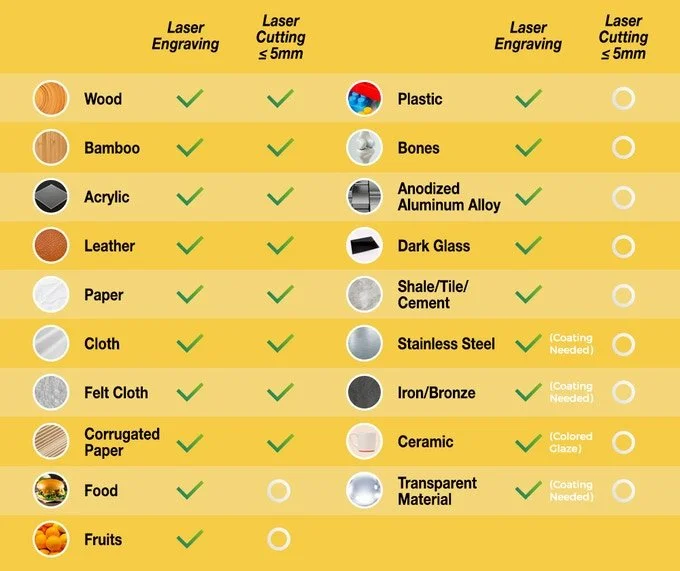 Met onze profi machine kunnen we nagenoeg alle materialen laser graveren. Heb je nog geen eigen logo? Geen probleem! Onze Design Studio maakt de mooiste logo’s om te laser graveren!